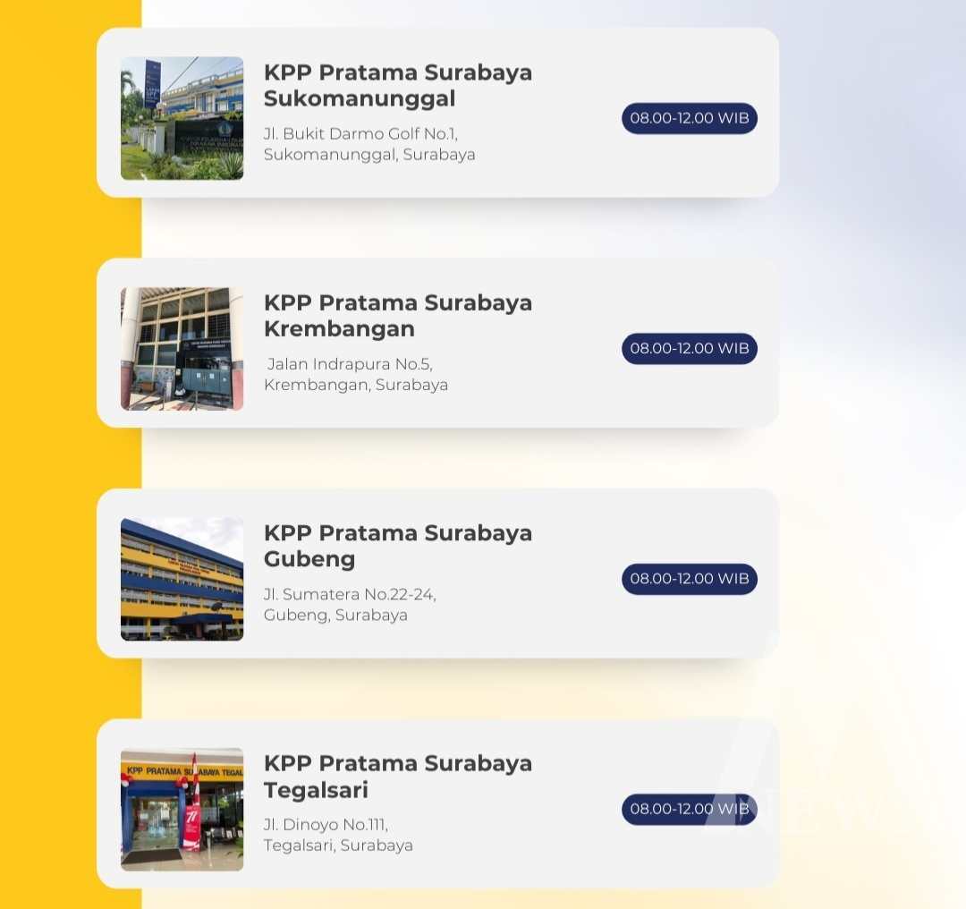 Wajib Pajak diimbau untuk memantau secara berkala akun media sosial Kantor Pelayanan Pajak (KPP) di wilayah domisili masing-masing guna memperoleh informasi detail mengenai jadwal operasional dan jam layanan unit kerja terdekat.
