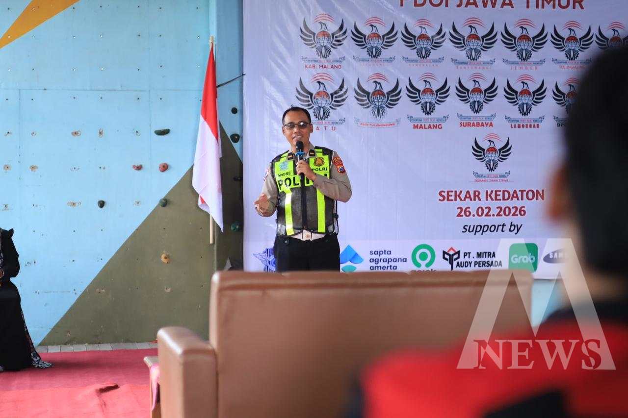 Mewakili Kasatlantas Polres Gresik AKP Nur Arifin, Kanit Kamsel Satlantas Polres Gresik Ipda Andreas Dwi A. menyampaikan sosialisasi terkait safety riding guna meningkatkan kesadaran tertib dan berkeselamatan dalam berlalu lintas.