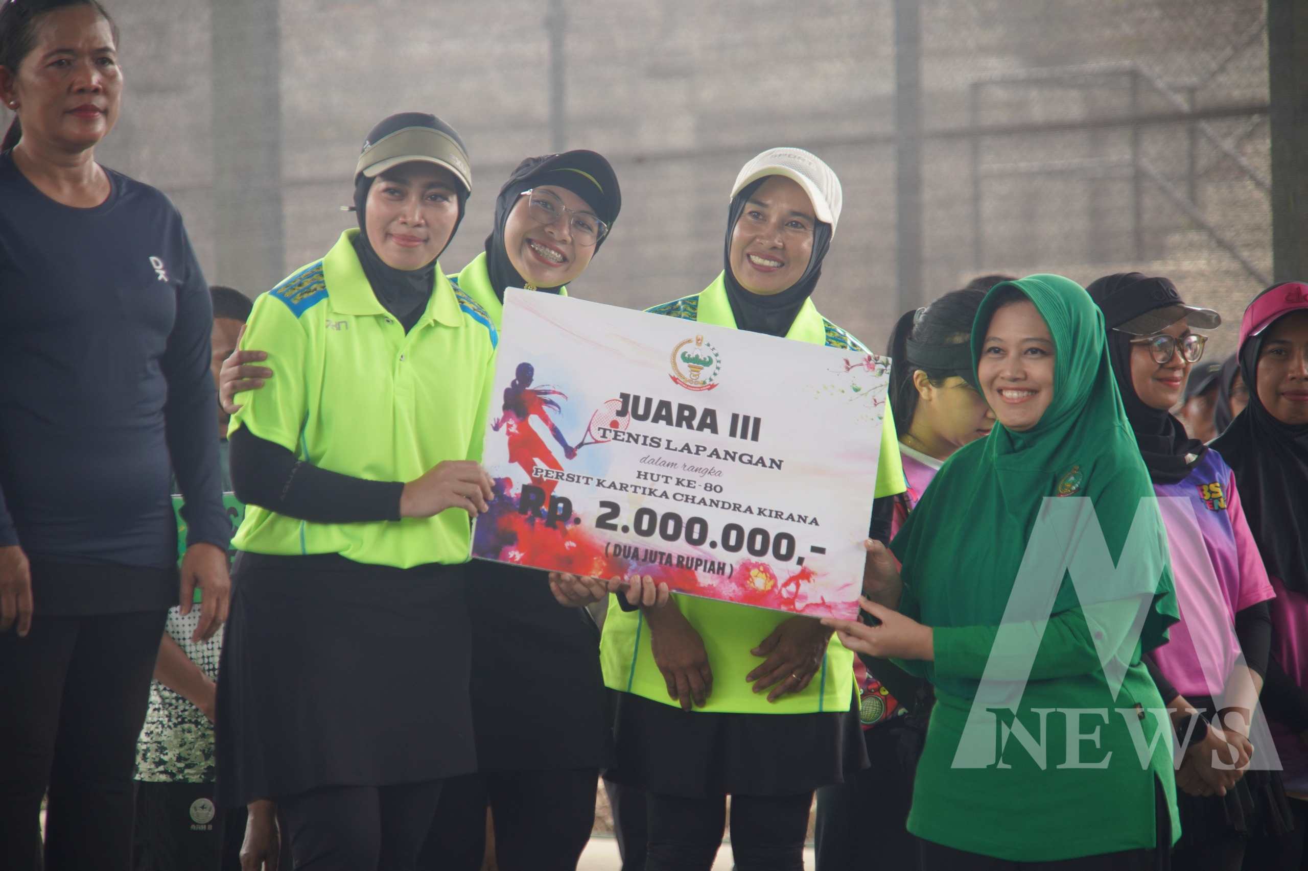 Dalam perlombaan tenis tersebut, Juara I diraih oleh Persit KCK Koorcab Rem 081, Juara II diraih Persit KCK Cabang Seatap, Juara III diraih Persit KCK Koorcab Rem 084.