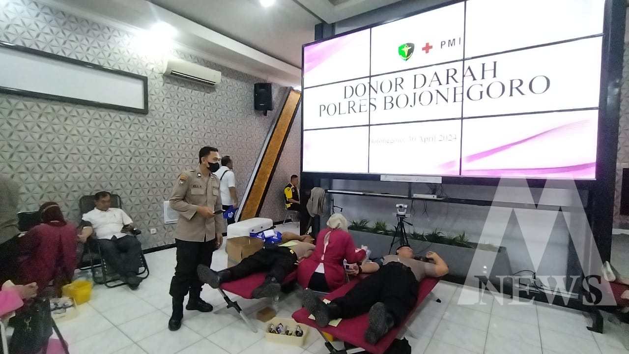 Dalam aksi donor darah tersebut melibatkan ratusan personel Polres Bojonegoro, Polsek jajaran dan Bhayangkari.