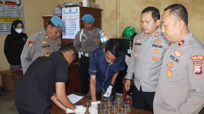 Selain menyampaikan motivasi dan arahan, Kapolres juga memimpin langsung pelaksanaan tes urin secara acak terhadap anggota Polsek Sawahan. Pemeriksaan ini bertujuan memastikan tidak ada personel yang terlibat dalam penyalahgunaan Narkotika.