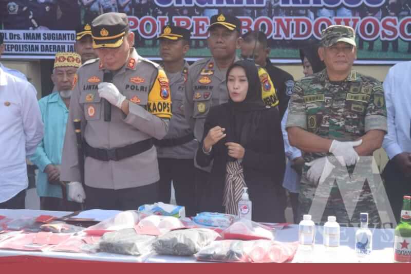 Sebagai informasi, Polres Bondowoso Polda Jatim bersama unsur Forkopimda juga memusnahkan barang bukti yaitu miras (minuman keras) dengan total 2.540 botol berbagai merk dan knalpot yang tidak sesuai spektek sebanyak 50 buah. (BJ)