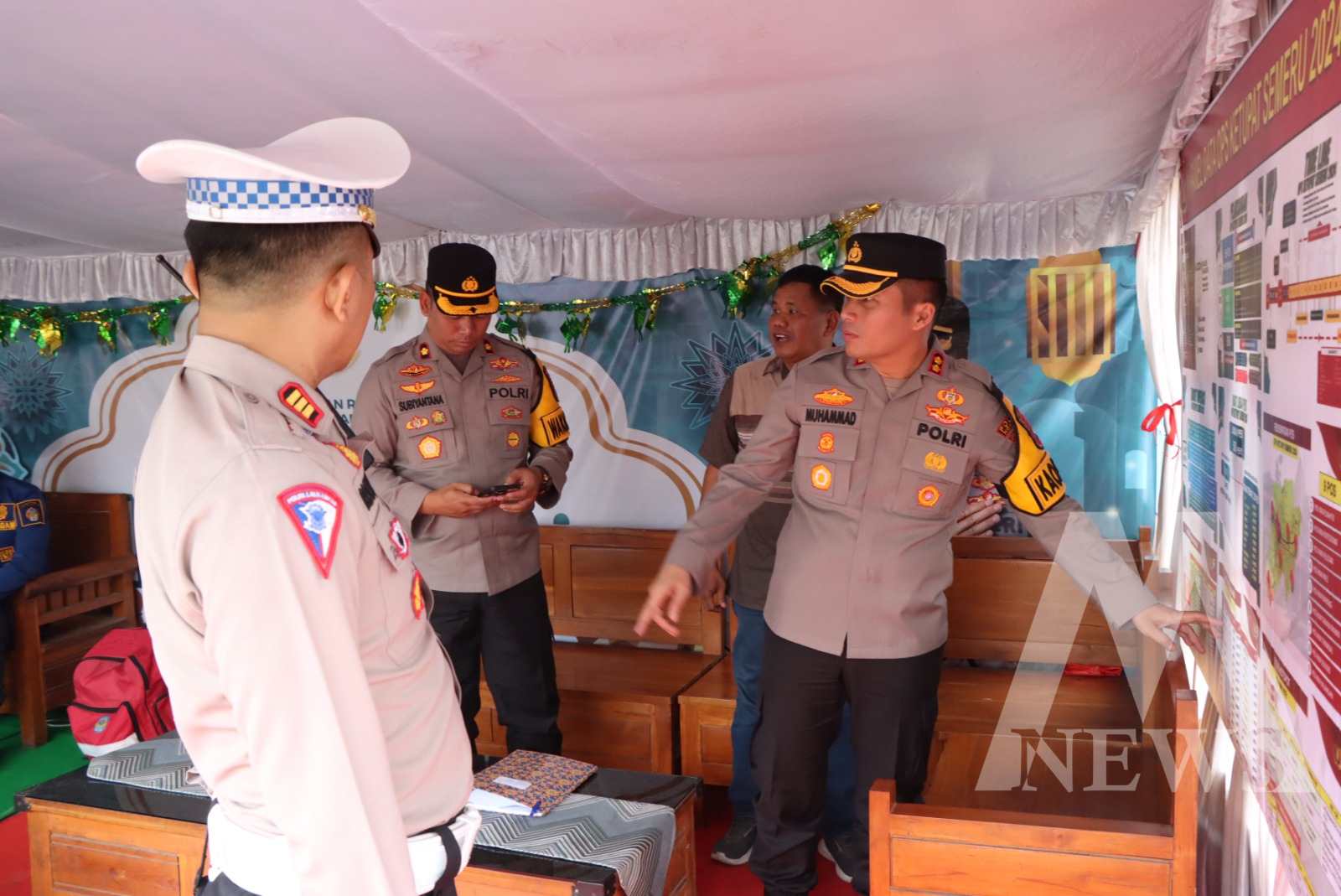 Kapolres beserta rombongan melakukan pengecekan secara menyeluruh dari performa petugas dan alat pendukung operasi di 8 pos Pengamanan dan 1 pos pelayanan yang dipersiapkan untuk menghadapi arus mudik dan balik pada libur lebaran Idul Fitri 1445H/2024M.