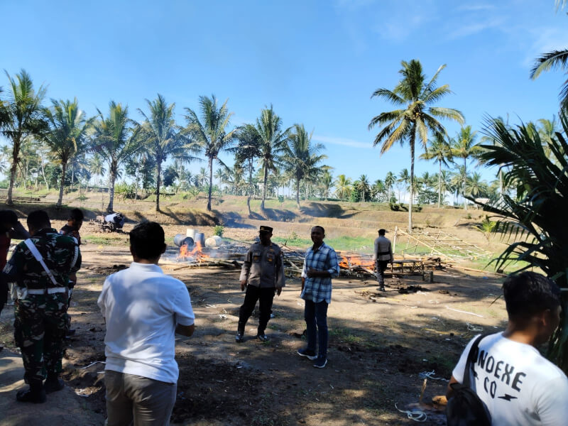 Langkah berikutnya, Polisi melakukan pembakaran terhadap sarana perjudian yang ditemukan.
