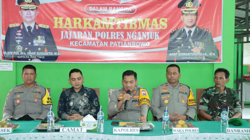 Kegiatan yang digelar di Pendopo Kecamatan Patianrowo, Kabupaten Nganjuk pada Jum’at (06/12) itu dihadiri Kapolres Nganjuk AKBP Siswantoro beserta jajaran, Camat Patianrowo Widi Cahyono, SSTP, M.Si., tokoh masyarakat, tokoh agama, serta perwakilan pemuda.