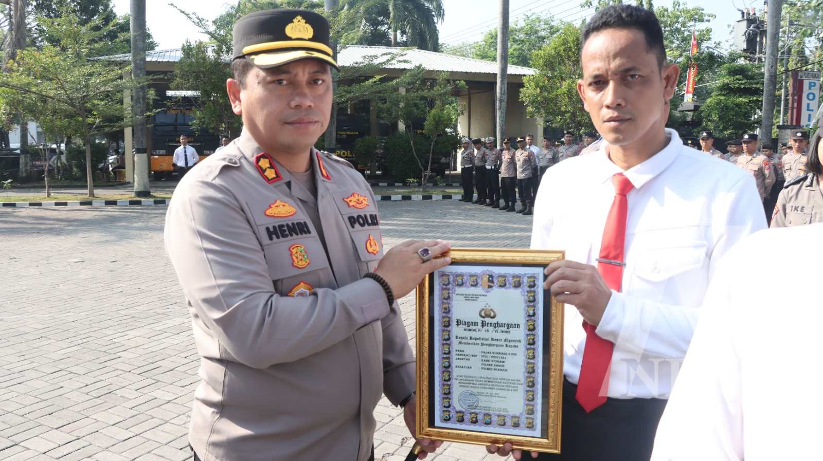 Meganews.co.id, Nganjuk – Kapolres Nganjuk, AKBP Henri Noveri Santoso, S.H., S.I.K., M.M., memimpin Apel Jam Pimpinan sekaligus memberikan penghargaan kepada 30 personel Polres Nganjuk yang berprestasi pada Senin (11/08/25) pagi. Penghargaan ini diberikan kepada anggota yang dinilai mampu melampaui panggilan tugasnya dalam menjaga keamanan dan melayani masyarakat.