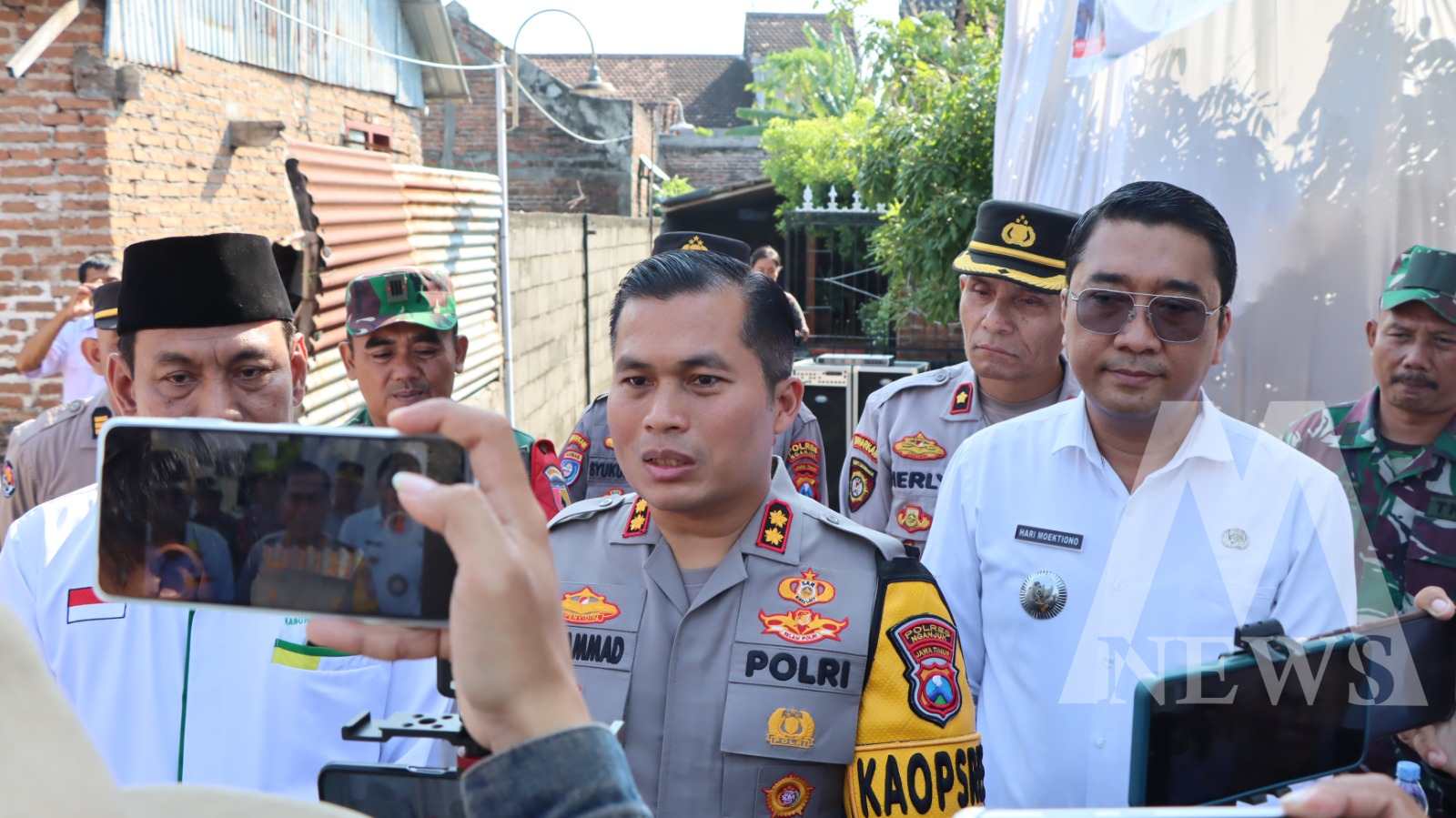 Meganews.co.id, Nganjuk – Kapolres Nganjuk, AKBP Muhammad, S.H., S.I.K., M.Si., didampingi Pejabat Utama (PJU), para Kapolsek, Ketua Baznas Kabupaten Nganjuk serta unsur Forkopimcam Nganjuk dan Pemerintahan Kelurahan Kramat, hari ini melaksanakan peletakan batu pertama kegiatan Program “Bedah Rumah” dalam rangka HUT Bhayangkara ke 78 tahun 2024, Rabu (12/06/24).