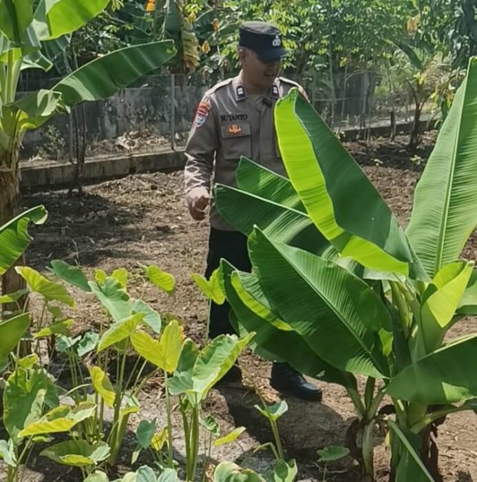 Meganews.co.id, Nganjuk – Bhabinkamtibmas Desa Senjayan, Aiptu Suyanto, melaksanakan pemantauan lahan pekarangan bergizi milik warga sebagai bagian dari program ketahanan pangan di RT 001 RW 006 Desa Senjayan, Kecamatan Gondang, Selasa (13/05/25).