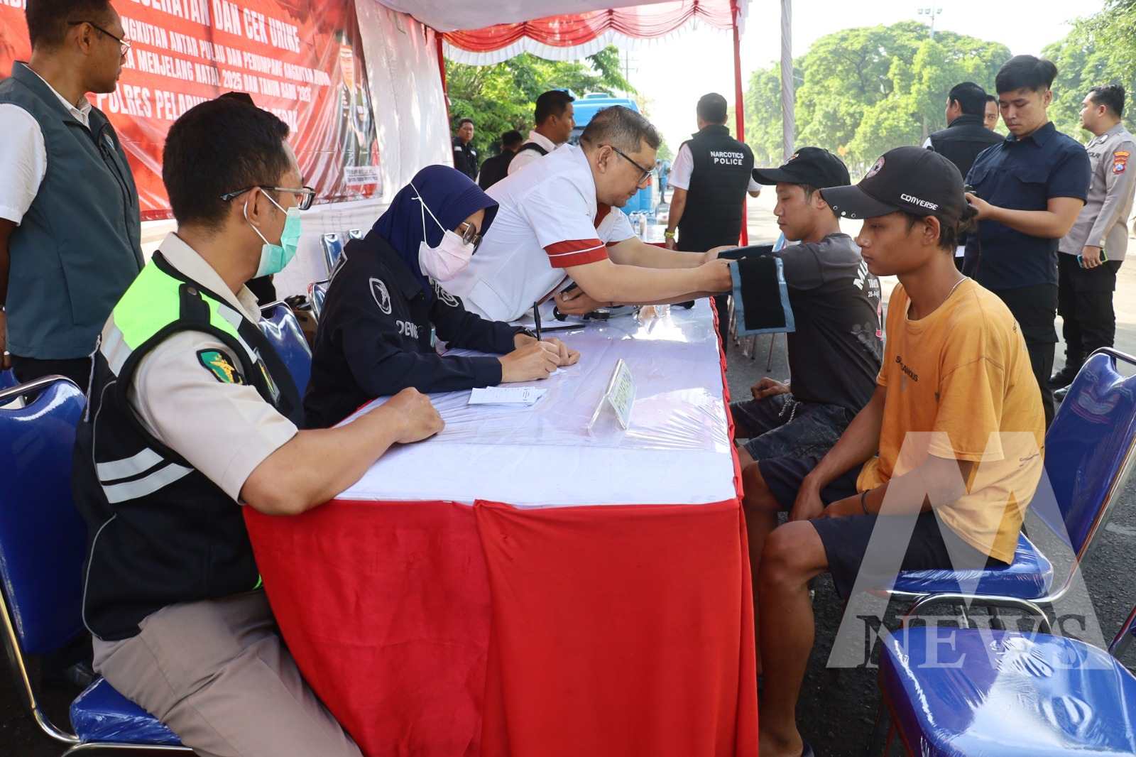 Pada Jum’at (12/12), aparat kepolisian berkolaborasi dengan BNNK Surabaya menggelar kegiatan Bakti Kesehatan dan Tes Urine bagi para pengemudi angkutan umum, angkutan antar pulau, serta ojek online (Ojol) yang melintas di kawasan Gate Pelabuhan Jamrud, Jalan Perak Timur.