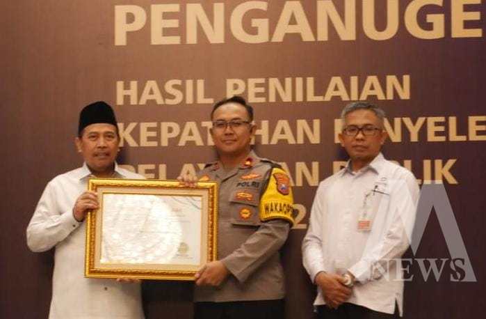 Piagam penghargaan tersebut diberikan kepada Polres Pamekasan Polda Jatim dalam rangka Penganugerahan Predikat Kepatuhan Penyelenggaraan Pelayanan Publik 2024.