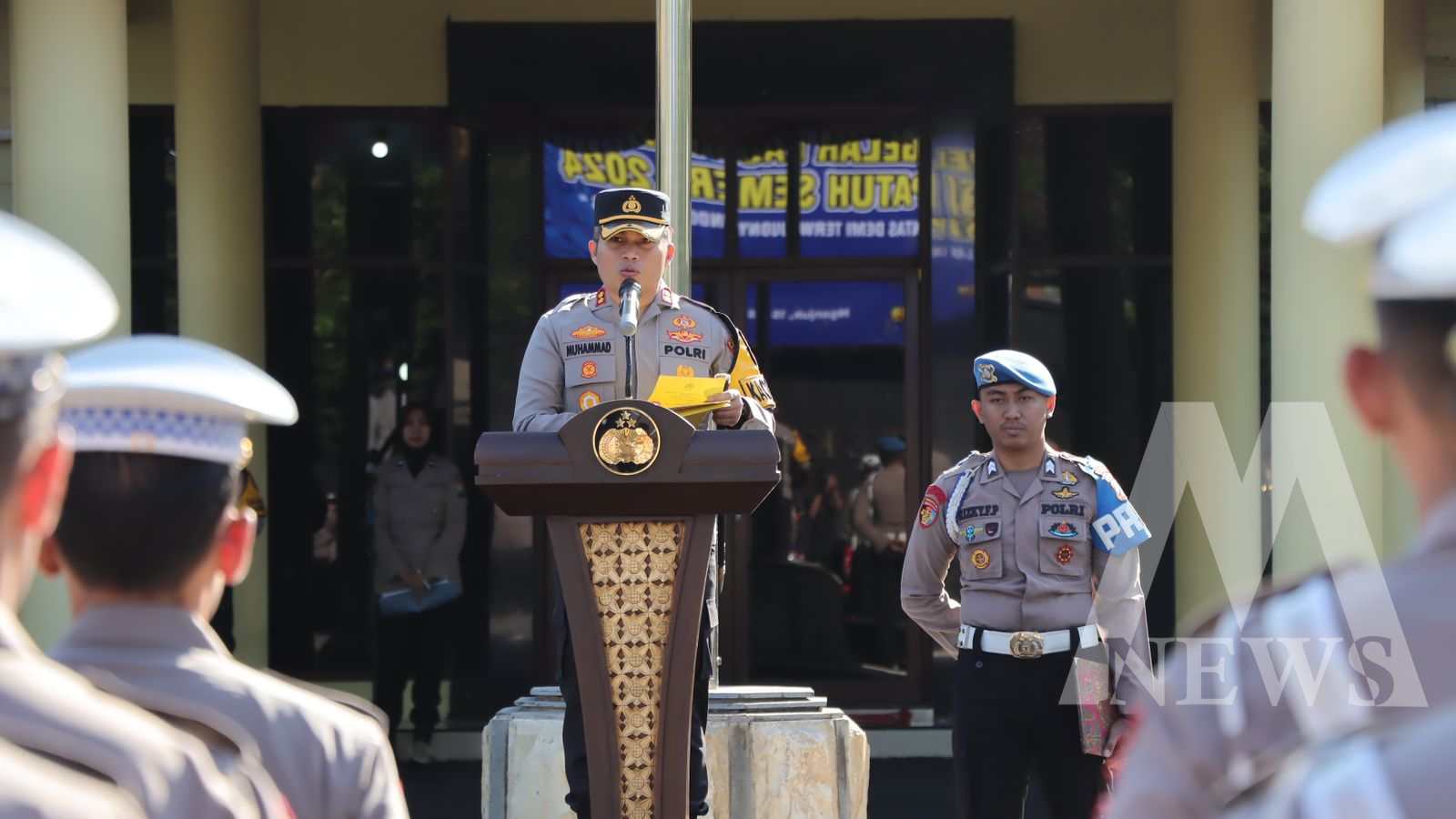 Meganews.co.id, Nganjuk – Kapolres Nganjuk, AKBP Muhammad, S.H., S.I.K., M.Si., memimpin Apel Gelar Pasukan Operasi Patuh Semeru 2024 dengan mengambil tema “Tertib Berlalu Lintas Demi Terwujudnya Indonesia Emas”. Apel yang diikuti oleh pasukan gabungan anggota Polres Nganjuk, anggota Kodim 0810/Nganjuk dan POM TNI Nganjuk, serta DISHUB Kabupaten Nganjuk tersebut dilaksanakan di lapangan apel Polres Nganjuk, Senin (15/07/24).