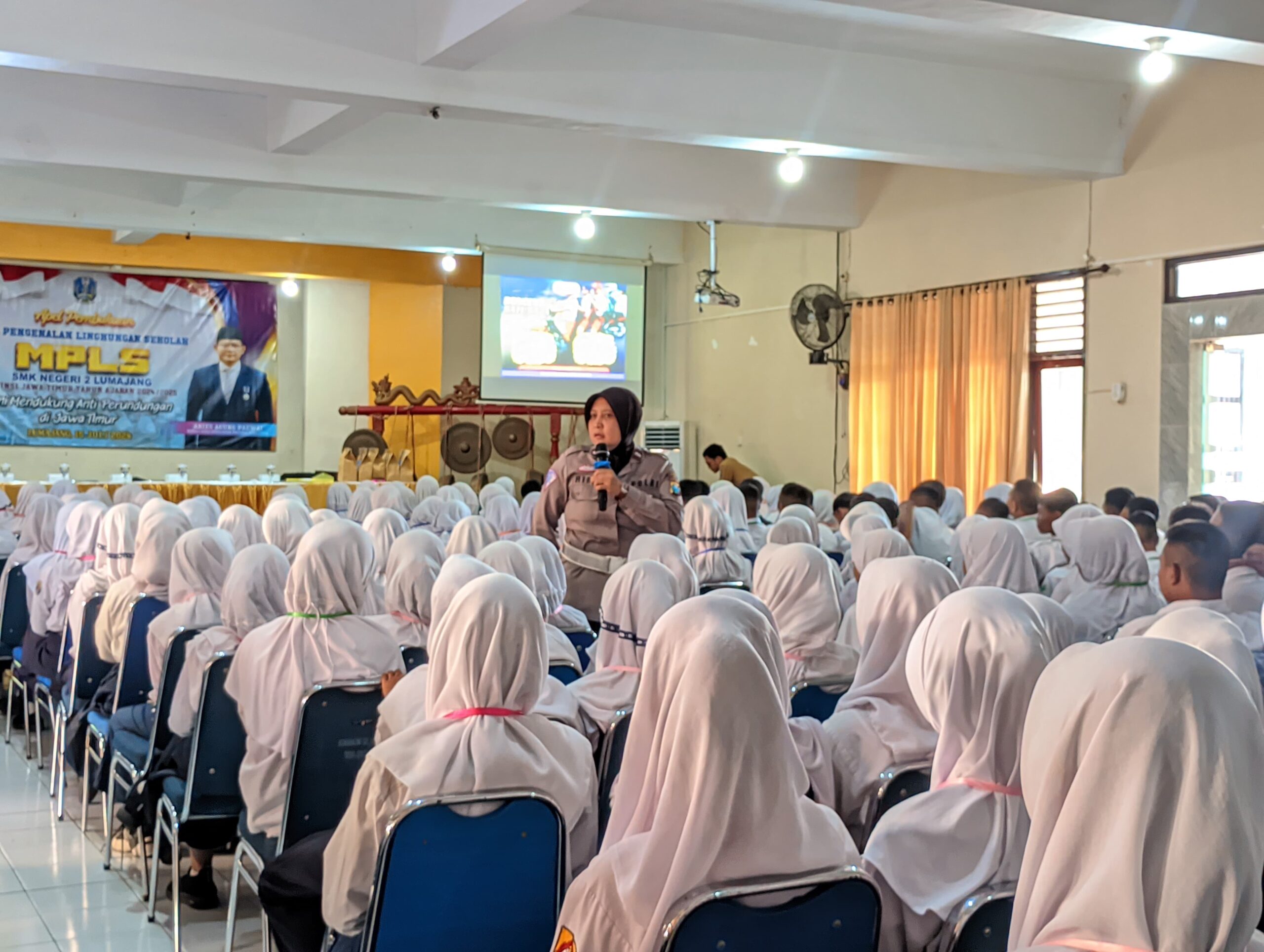 Meganews.co.id, Lumajang – Satlantas Polres Lumajang mengedukasi pelajar tentang pentingnya tertib berlalu lintas melalui program Police Goes To School.