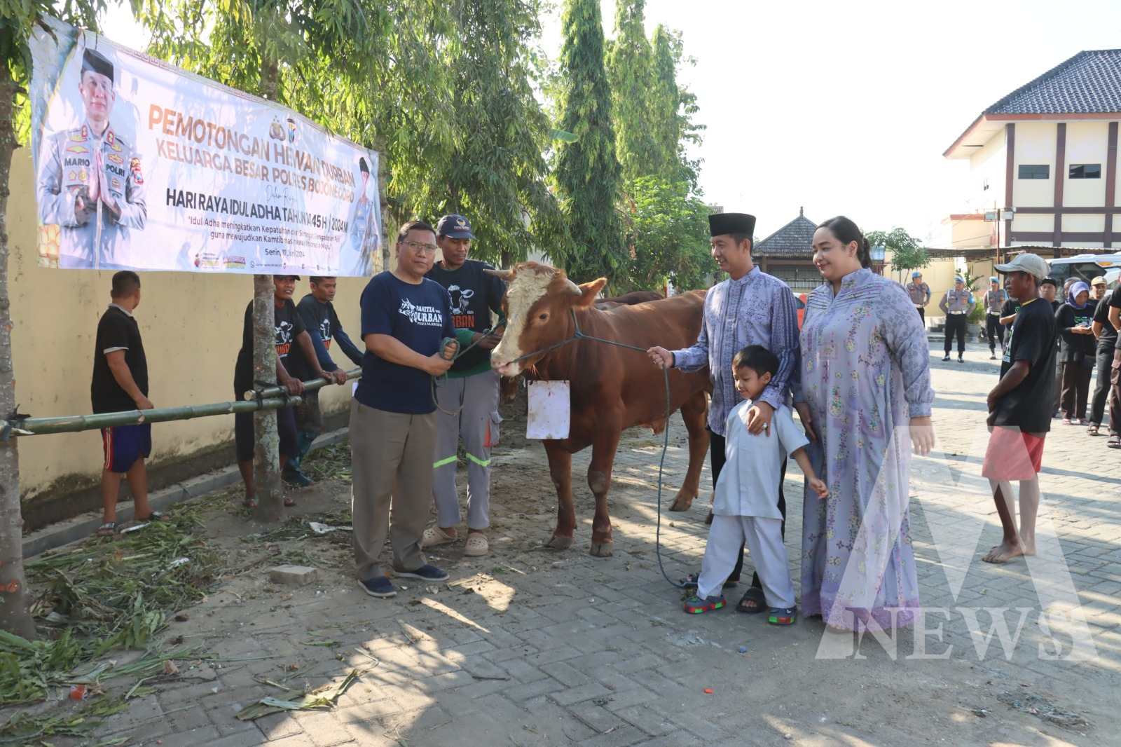 Selanjutnya, Kapolres Bojonegoro bersama Wakapolres dan PJU melakukan penyembelihan hewan qurban Idul Adha 10 Zulhijah 1445 H / 2024 M, di halaman kantor Sat Samapta Polres Bojonegoro.