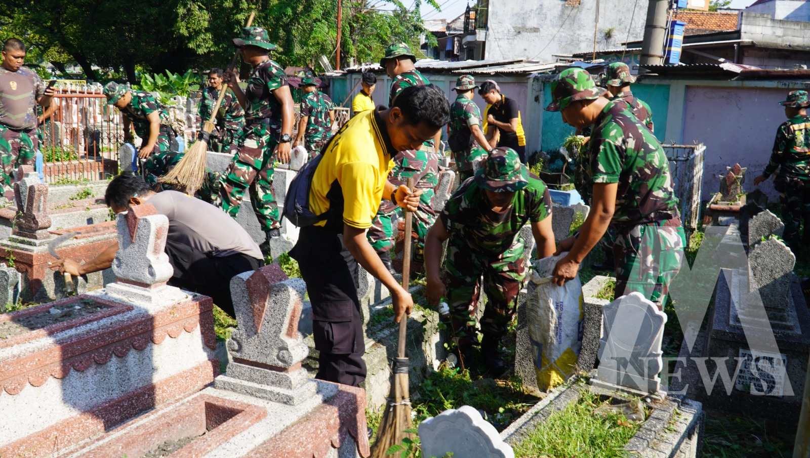 Meganews.co.id, Surabaya — Menjelang peringatan Hari Bhayangkara ke-79, Polrestabes Surabaya Polda Jatim menunjukkan kepedulian sosialnya melalui aksi Bakti Religi pembersihan makam yang berlangsung di Makam Pegirikan, Kelurahan Ampel, Kecamatan Semampir, Surabaya.