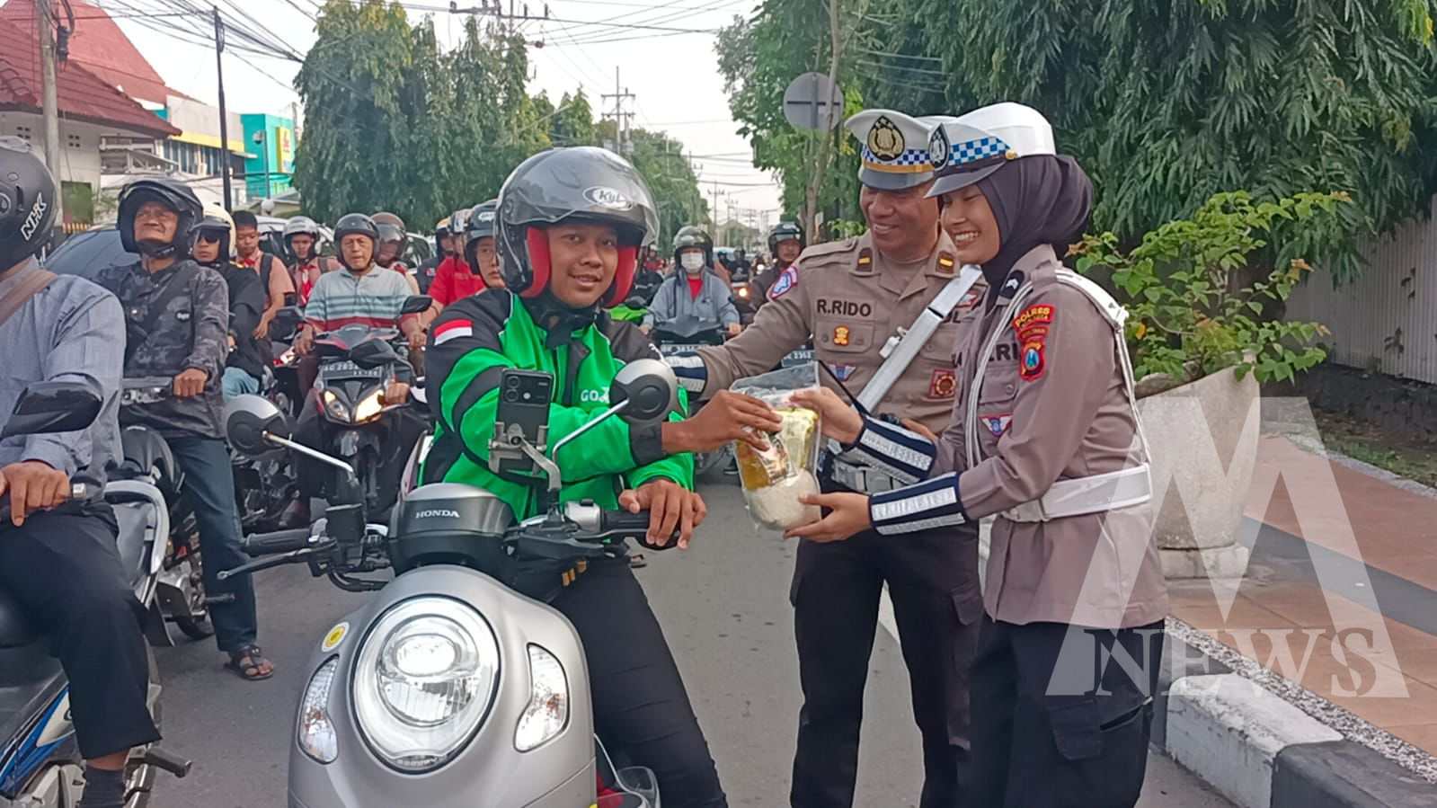 Selain memberikan bantuan berupa sembako, tim Unit Kamsel juga menyisipkan pesan penting mengenai tertib berlalu lintas kepada masyarakat yang hadir.