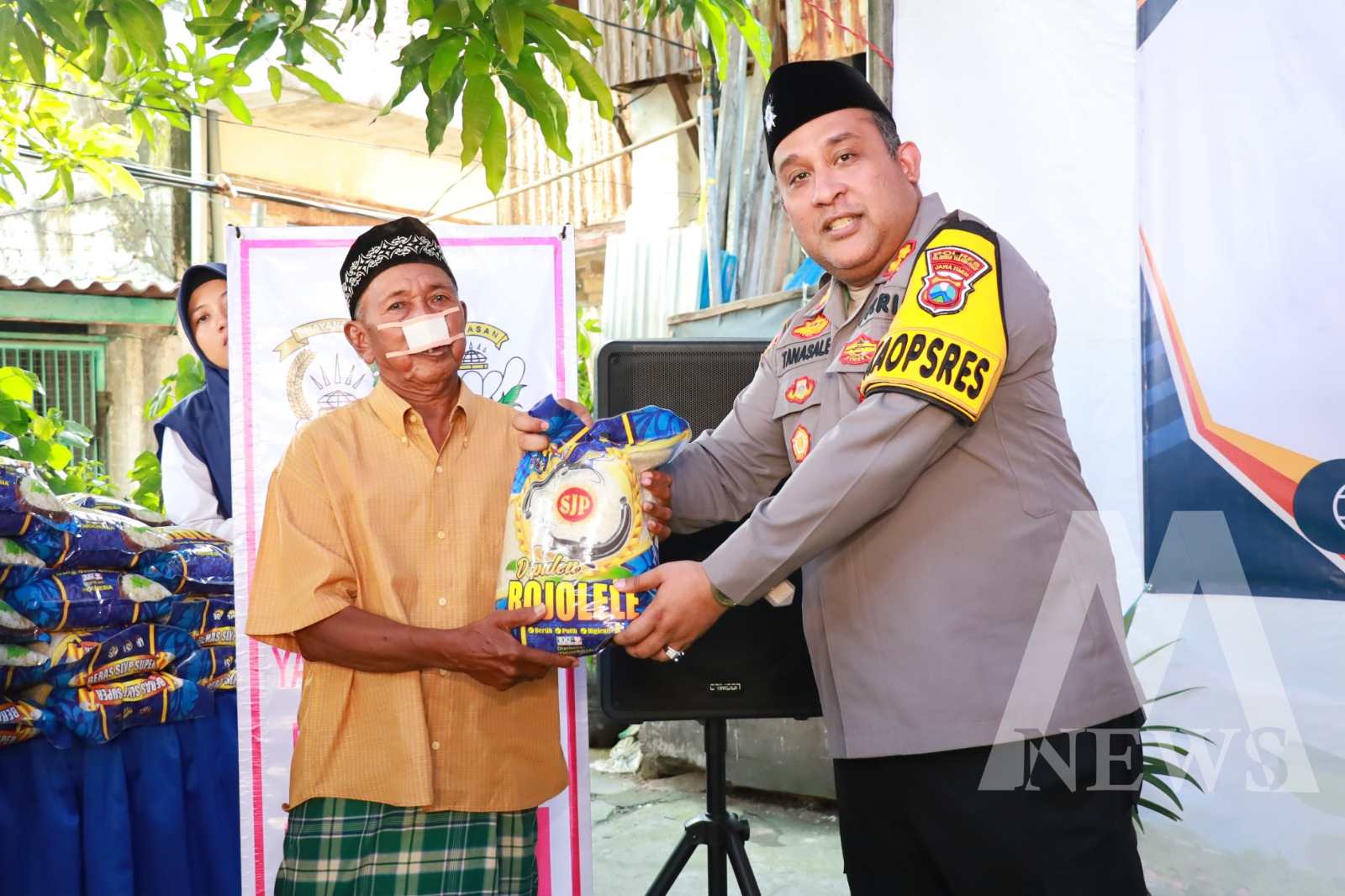 “Hari ini kami memberikan santunan kepada 100 paket sembako dan santunan 55 anak yatim,” tutur Kapolres.