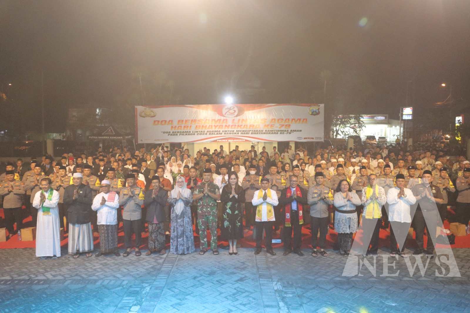 Meganews.co.id, Mojokerto – Menyambut Hari Bhayangkara ke – 78, Polres Mojokerto Polda Jatim menggelar doa bersama lintas agama di lapangan upacara Mapolres Mojokerto, Jalan Gajah Mada, Mojosari.
