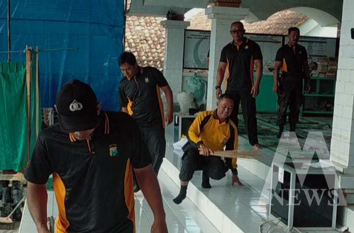 Selain membersihkan area tempat ibadah, jajaran Polres Pamekasan juga menyerahkan bantuan berupa alat-alat kebersihan dan sembako kepada pengurus masjid.