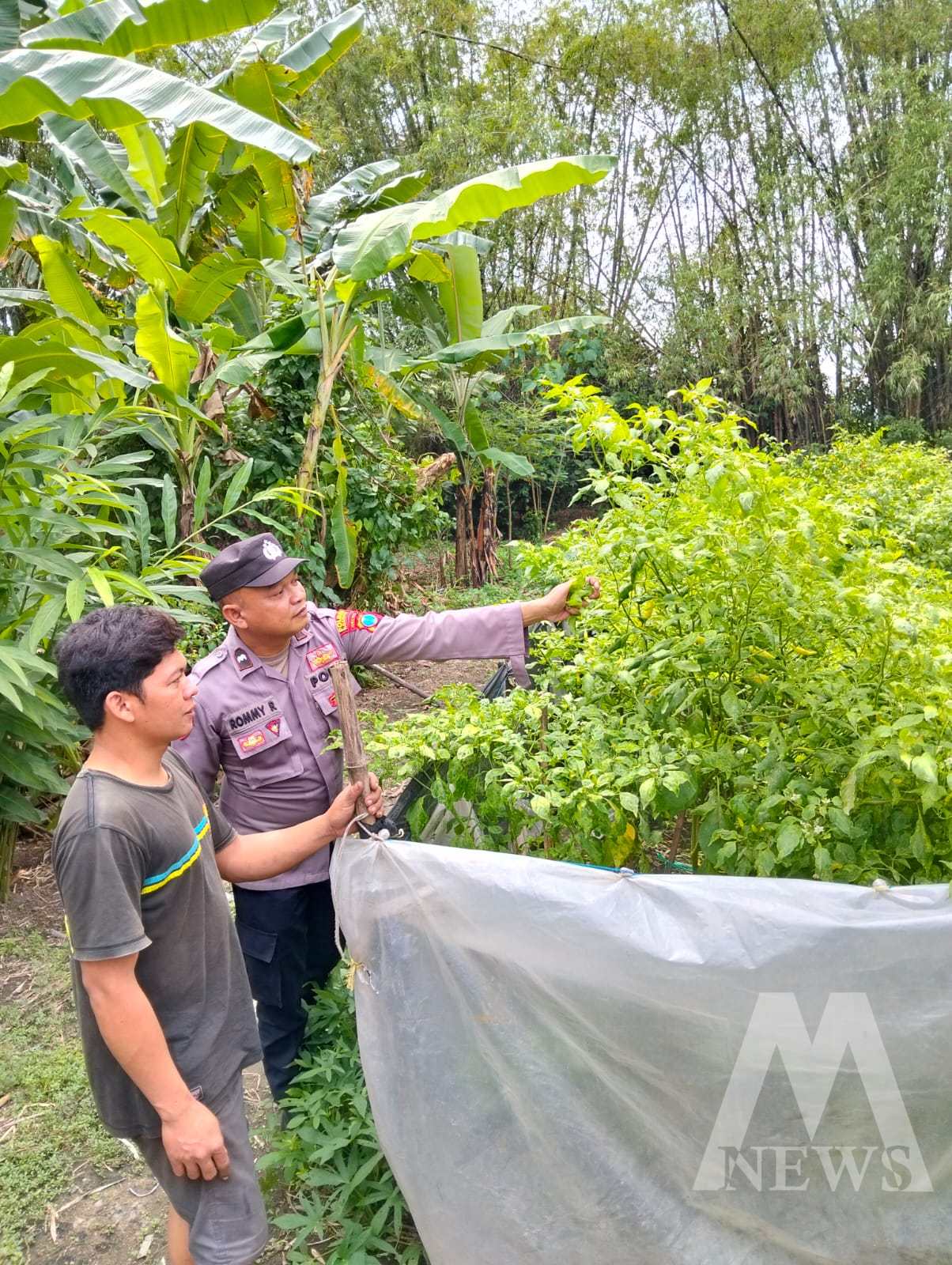 Meganews.co.id, Nganjuk – Dalam upaya mendukung program ketahanan pangan nasional, Bhabinkamtibmas Desa Nglinggo Polsek Gondang, Aipda Romy R, melaksanakan pemantauan lahan pekarangan milik warga yang ditanami cabai merah di Desa Nglinggo, Kecamatan Gondang, Kabupaten Nganjuk, Senin (21/07).