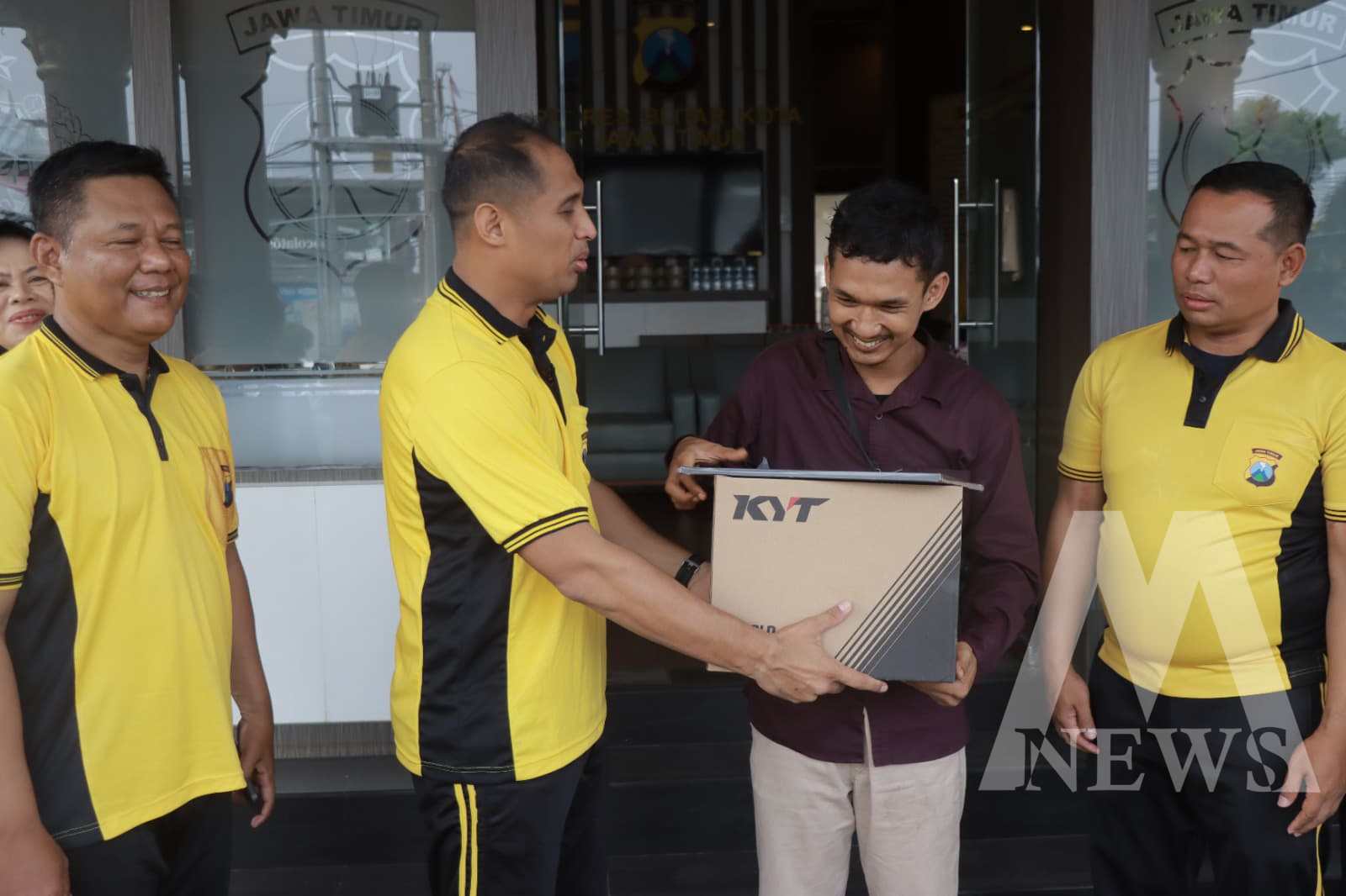 “Atas kepeduliannya dan keberaniannya, Mas Mizan ini mencoba menangkap pelaku dengan menabrak motor pelaku. Kemudian melaporkan kepada kami,” terang AKBP Titus.