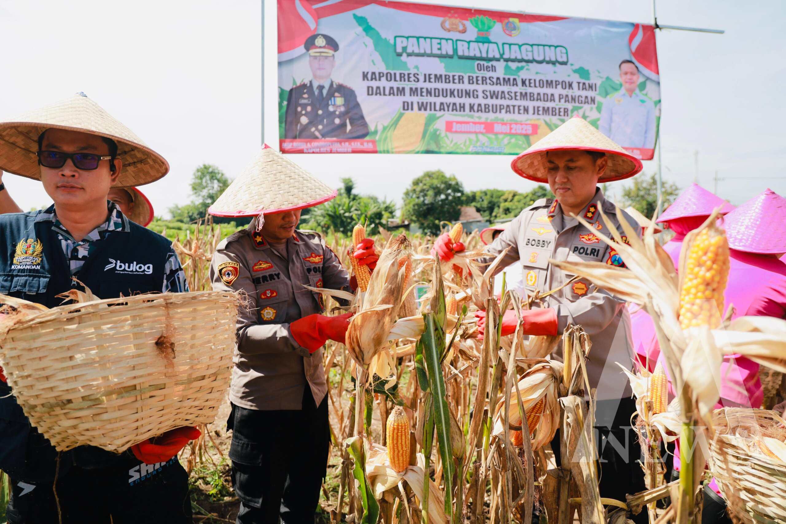 Hari itu, Kapolres Jember AKBP Bobby Adhimas Condro Putra turun langsung ke sawah untuk ikut panen raya jagung sekaligus menanam benih jagung baru bersama warga dan para pejabat terkait.