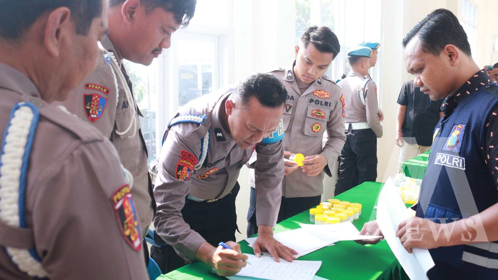 Dalam kegiatan tersebut, tim dari Bidpropam Polda Jatim yang dipimpin oleh AKBP Siswantoro, S.I.K., M.H., melaksanakan tes urine kepada 60 personel, serta melakukan pengecekan langsung terhadap ruang tahanan dan penjagaan di Mako Polres Nganjuk.