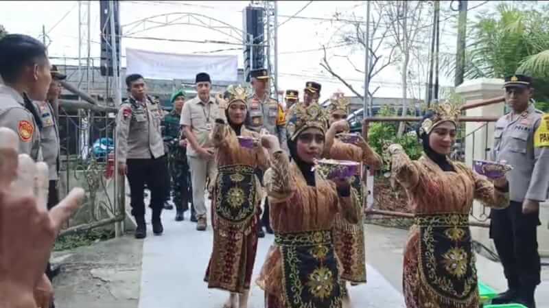 Nuansa hajatan pernikahan terasa kala Kapolda Jatim masuk ke area TPS dan disambut dengan ornamen pesta pernikahan yang meriah.