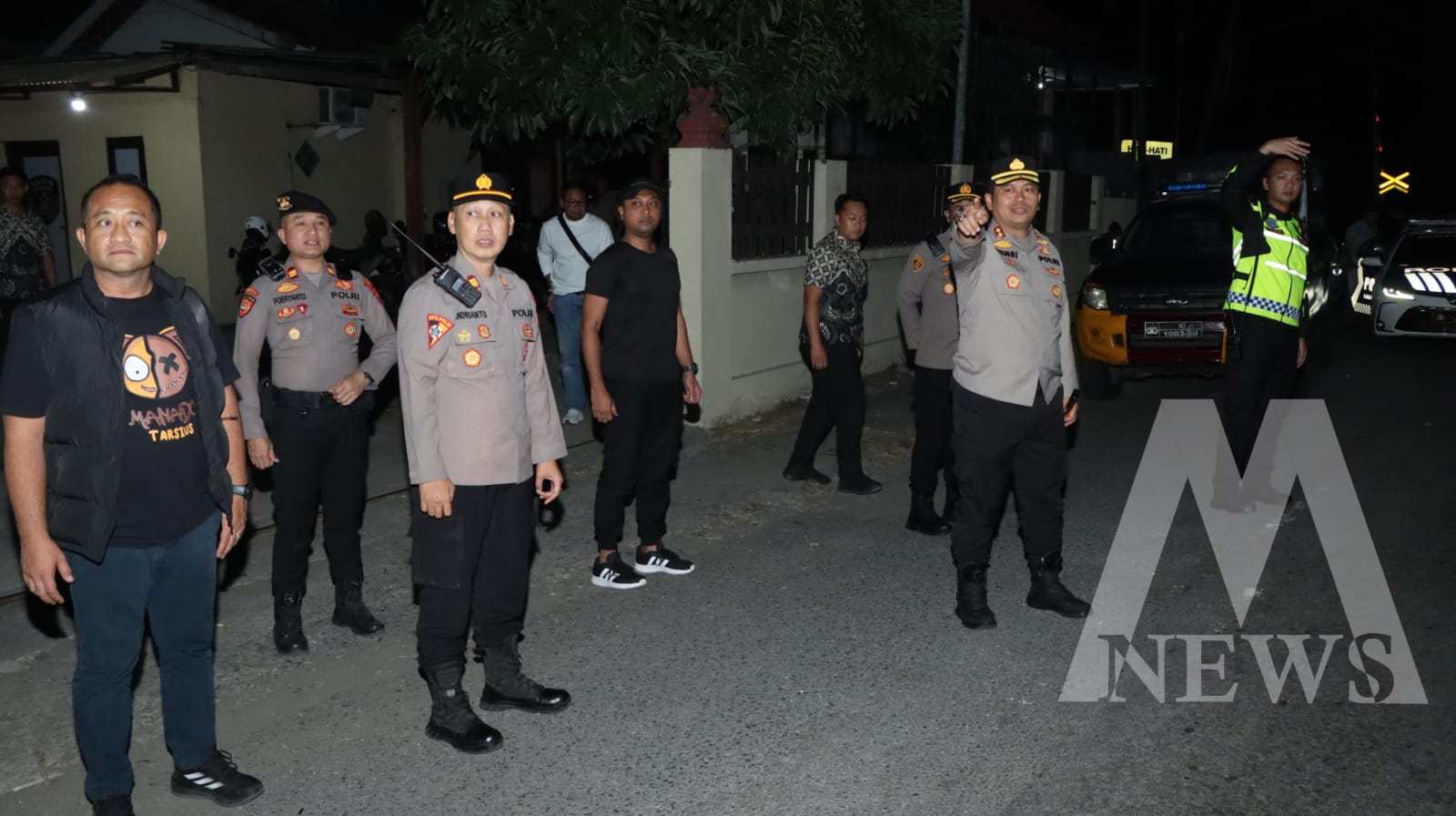 Meganews.co.id, Nganjuk – Kapolres Nganjuk, AKBP Henri Noveri Santoso, S.H., S.I.K., M.M., memimpin langsung kegiatan patroli SREG dan penyekatan di depan Mapolsek Wilangan, wilayah perbatasan Nganjuk-Madiun, dalam rangka pengamanan malam 1 Suro, Jum’at (27/06).