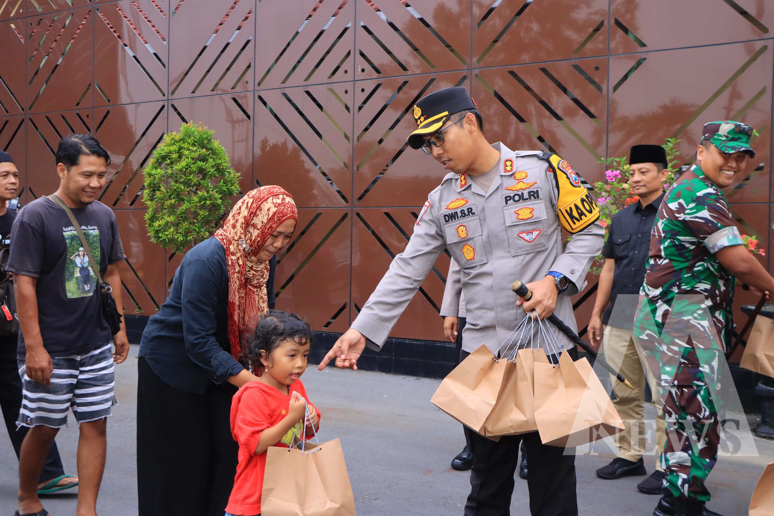 Takjil gratis yang dibagikan oleh anggota Polres Ngawi Polda Jatim bersama TNI kepada pengguna jalan ini, memanfaatkan keberkahan bulan suci Ramadhan 1446 H.