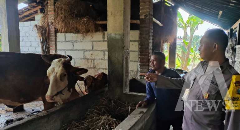 Meganews.co.id, Nganjuk – Guna mendukung program ketahanan pangan nasional, Bhabinkamtibmas Desa Nglawak Aipda Sunandar memantau langsung kondisi kandang sapi milik warga di Dusun Nglawak, Kecamatan Prambon, Kabupaten Nganjuk, Selasa (29/07).