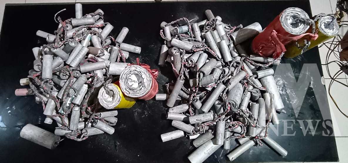 Dari penangkapan itu petugas menyita seperti barang bukti 2 rangkaian bahan peledak/mercon dengan panjang ±10 meter yang berisikan 100 buah mercon kecil, 2 buah mercon besar dan panjang ±10 meter yang berisikan 104 kecil mercon kecil, 2 buah mercon besar serta 1 buah HP warna putih merk OPPO A37.