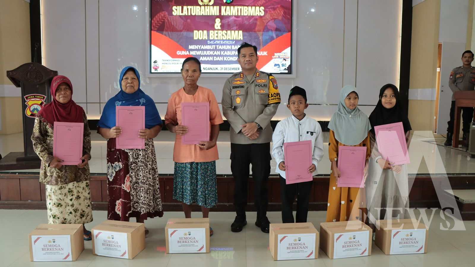 Sebagai bagian dari rangkaian kegiatan, Polres Nganjuk memberikan santunan kepada yatim piatu dan kaum duafa yang didatangkan dari beberapa yayasan sosial di Kota Nganjuk.
