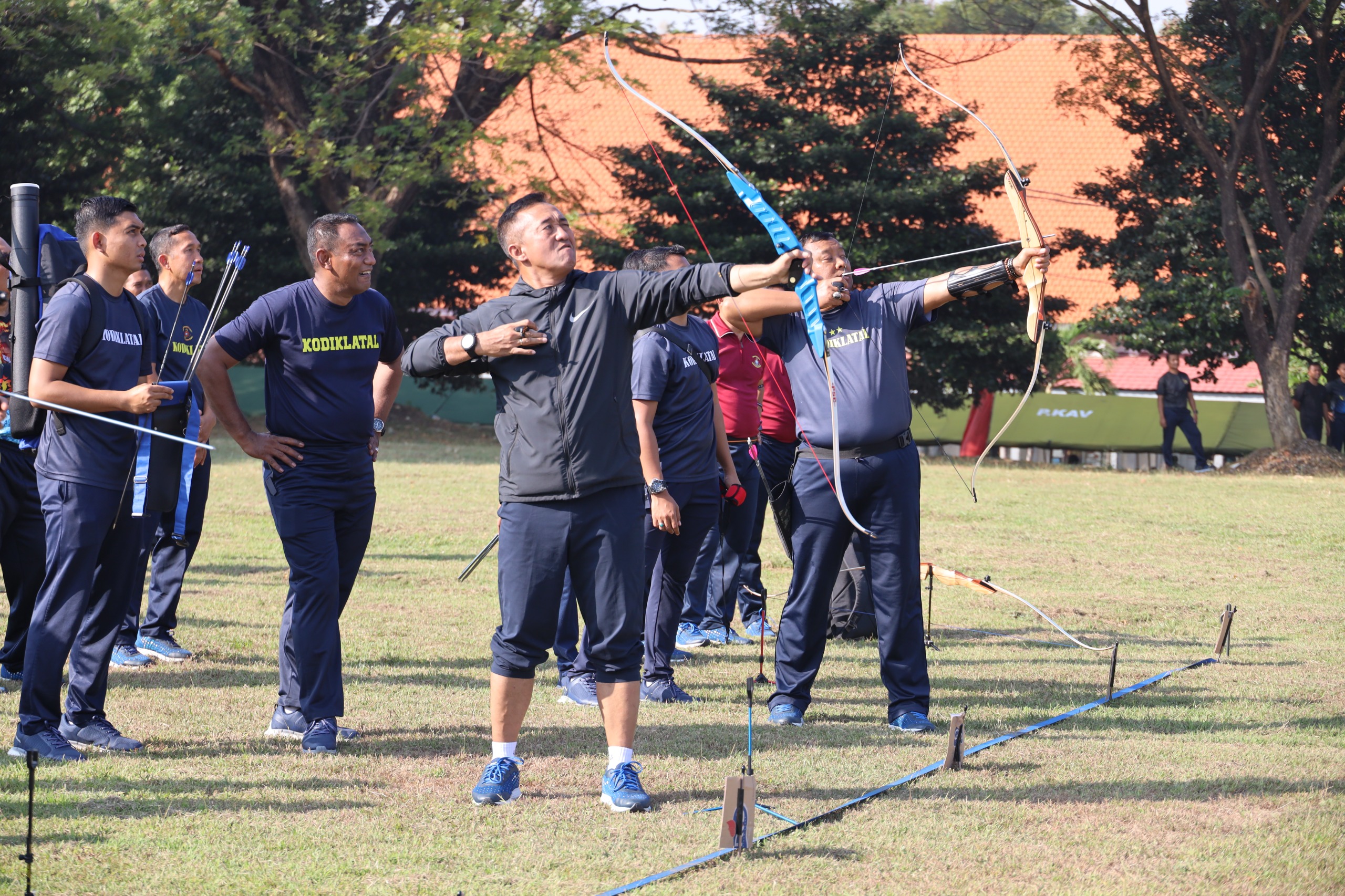 Meganews.co.id, Surabaya – Untuk membangun keakraban antar Satuan Kerja (Satker) dan menyalurkan bakat memanah, Komandan Kodiklatal (Dankodiklatal) Letjen TNI Marinir Nur Alamsyah didampingi Ketua Gabungan Jalasenastri Kodiklatal Ny. Ayu Nur Alamsyah mengajak seluruh keluarga besar Kodiklatal mengikuti Olah Raga Bersama dan Fun Archery Dankodiklatal Cup Tahun 2024, bertempat di Lapangan Apel Usman Harun, Mako Kodikmar Kodiklatal, Gunungsari Surabaya. Jum’at (07/06/24).