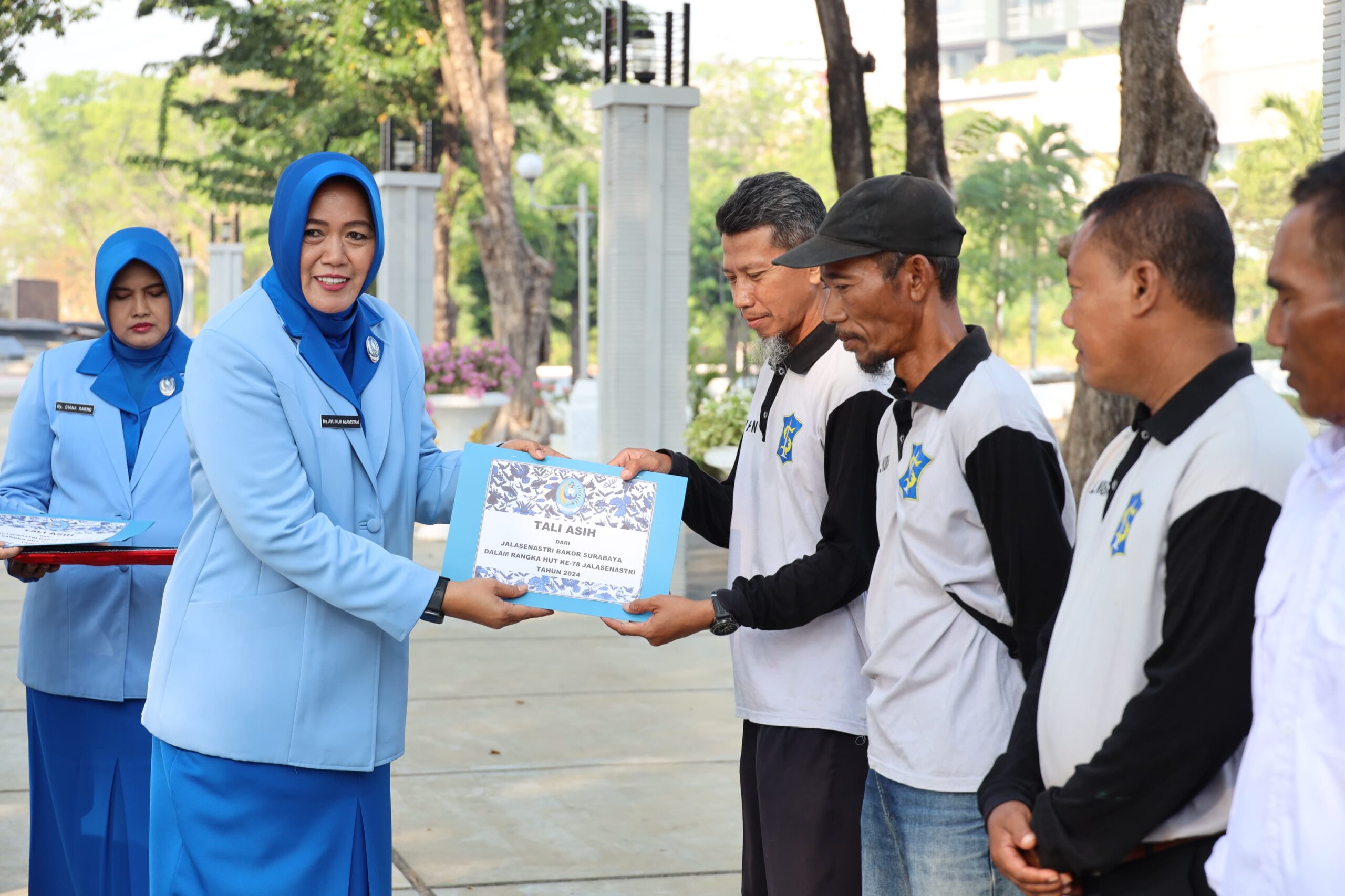 Ketua Gabungan Jalasenastri Kodikalatal Ny. Ayu Nur Alamsyah berikan tali asih