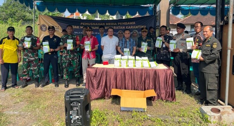 “Berdasarkan Pasal 48 Ayat (1) Huruf b Undang-Undang Nomor 21 Tahun 2019, pemusnahan media pembawa atau komoditas dilakukan apabila setelah pengamatan dalam pengasingan, ternyata tertular HPHK, HPIK, atau tidak bebas dari OPTK yang ditetapkan oleh Pemerintah Pusat,” terang Hari.