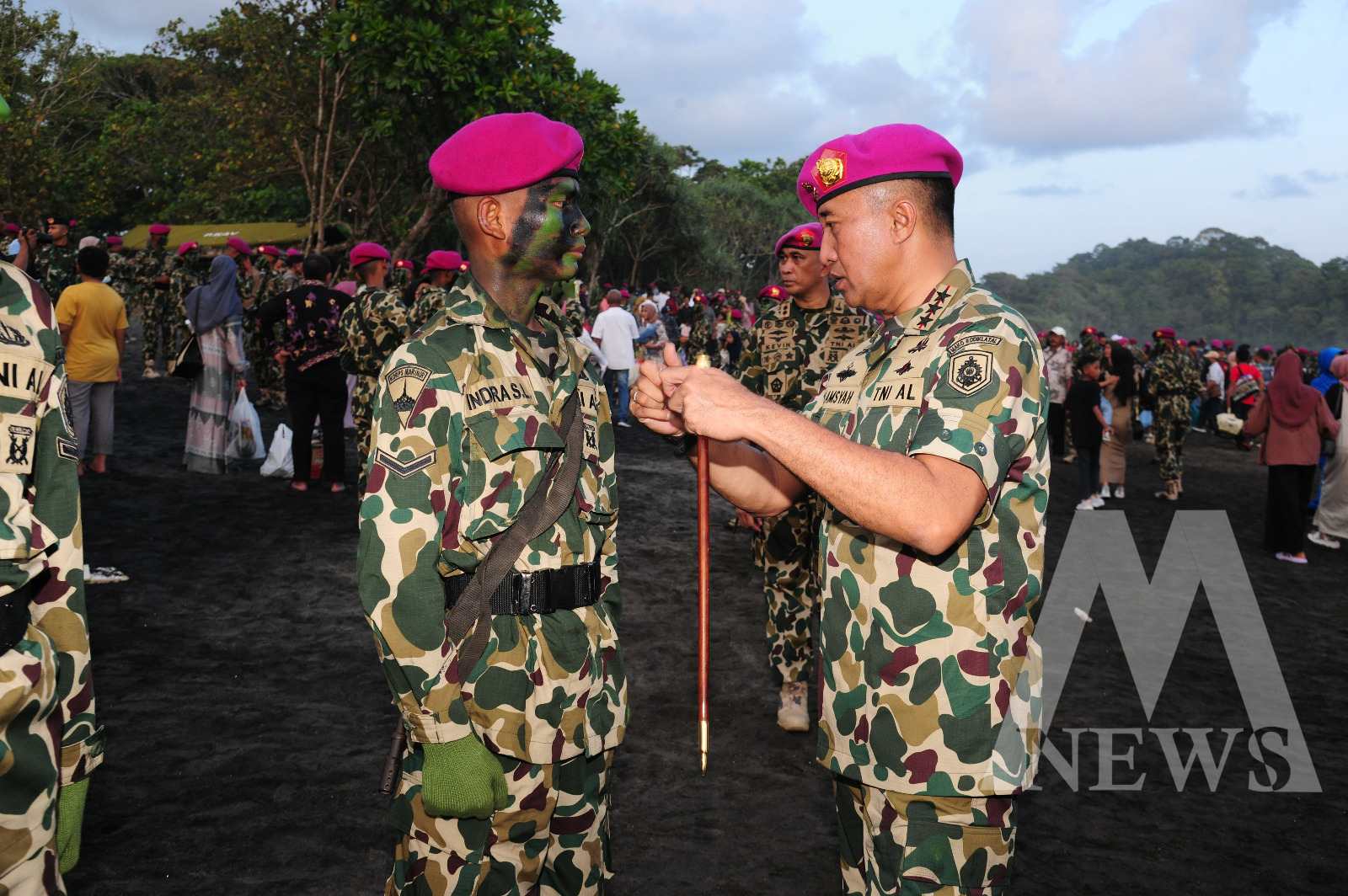 Meganews.co.id, Surabaya – Komandan Kodiklatal (Dankodiklatal) Letjen TNI Marinir Nur Alamsyah beserta Ketua Gabungan Jalasenastri Kodiklatal, Ny. Ayu Nur Alamsyah menghadiri Upacara Pembaretan Siswa Pendidikan Komando (Dikko) 173 Marinir yang terdiri dari; 58 Taruna AAL Angkatan 71, 100 Siswa Dikmaba 43/1 dan 343 Siswa Dikmata 43/1 TA 2023, yang dipimpin langsung Komandan Korps Marinir, Mayjen TNI Marinir Endi Supardi, bertempat di Pantai Baruna Malang Selatan. Jum’at (22/03).