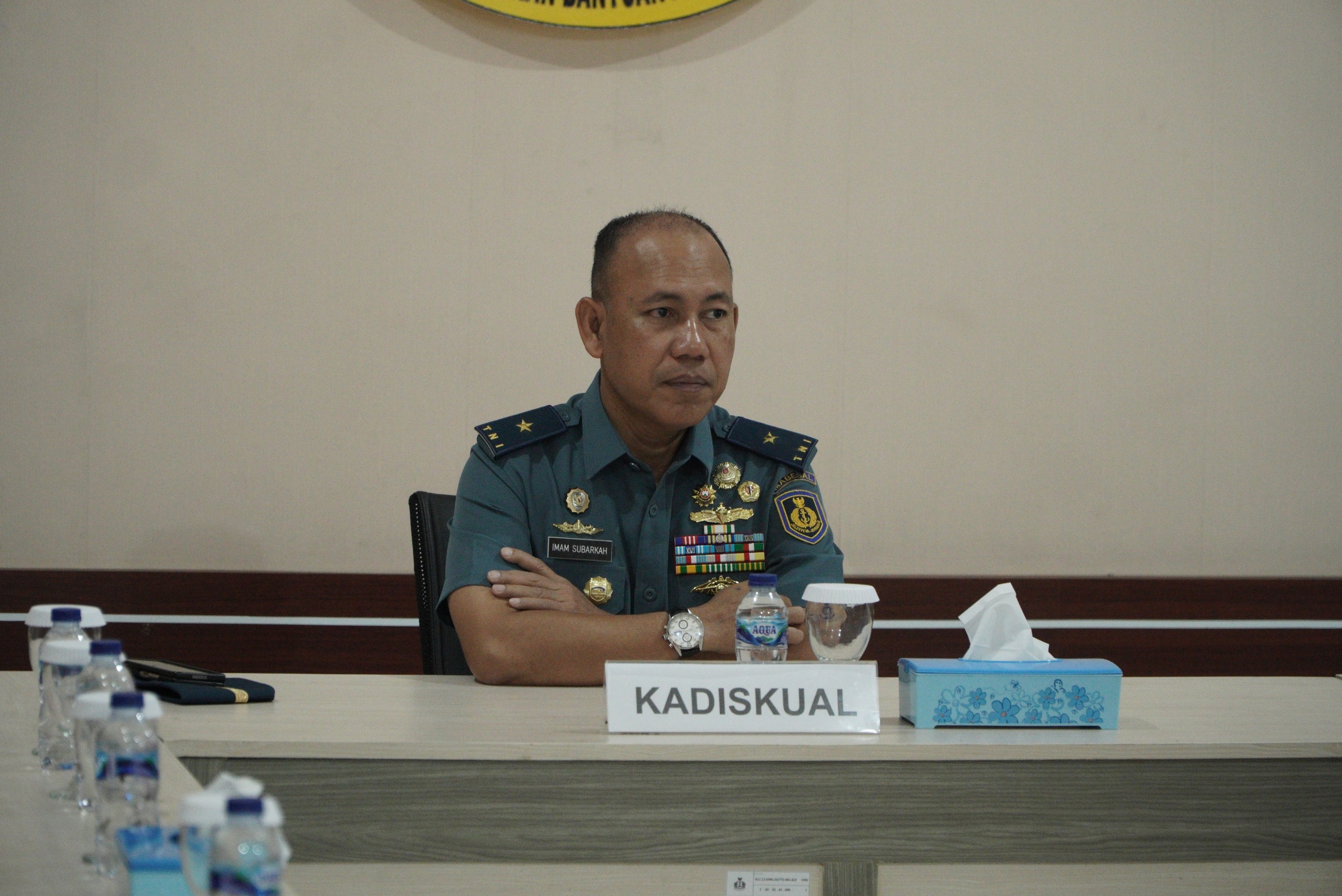 Usai pengarahan, Kadiskual bersama Wakil Komandan (Wadan) Kodiklatal Laksda TNI Eko Wahjono melaksanakan jamuan makan siang bersama dengan mengikuti tradisi table manner dari Pusdik Banmin Kodiklatal.