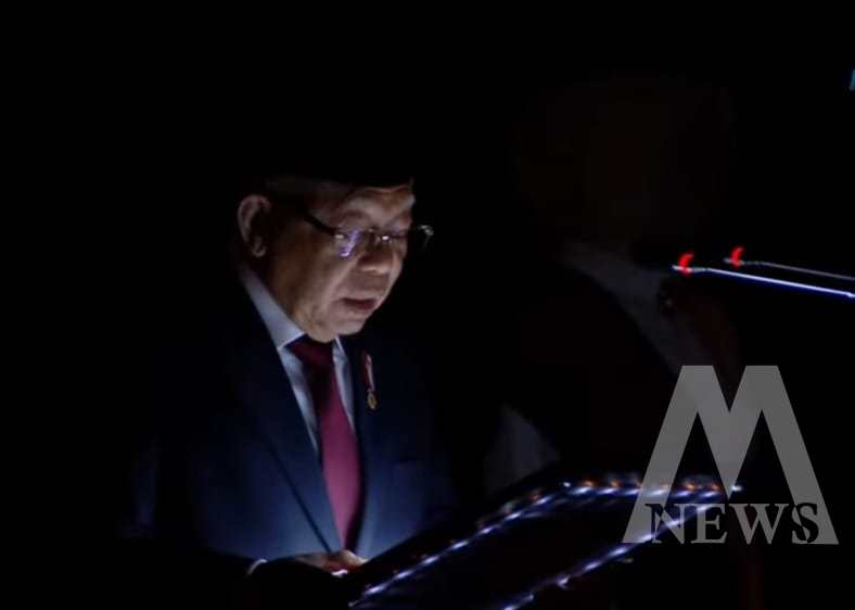 “Dalam rangka memperingati Hari Ulang Tahun Ke-79 Kemerdekaan Republik Indonesia, kami yang hadir pada hari ini, Sabtu tanggal 17 Agustus 2024 pukul 00.00 WIB, pada upacara mengenang arwah dan jasa para pahlawan nusa dan bangsa yang telah bersemayam di taman makam ini, sebanyak TNI dan Polri 9.301 pahlawan, badan perjuangan 930 pahlawan, tokoh nasional 76 pahlawan, tidak dikenal 43 pahlawan, jumlah 10.350 pahlawan,” tutur Wapres RI.