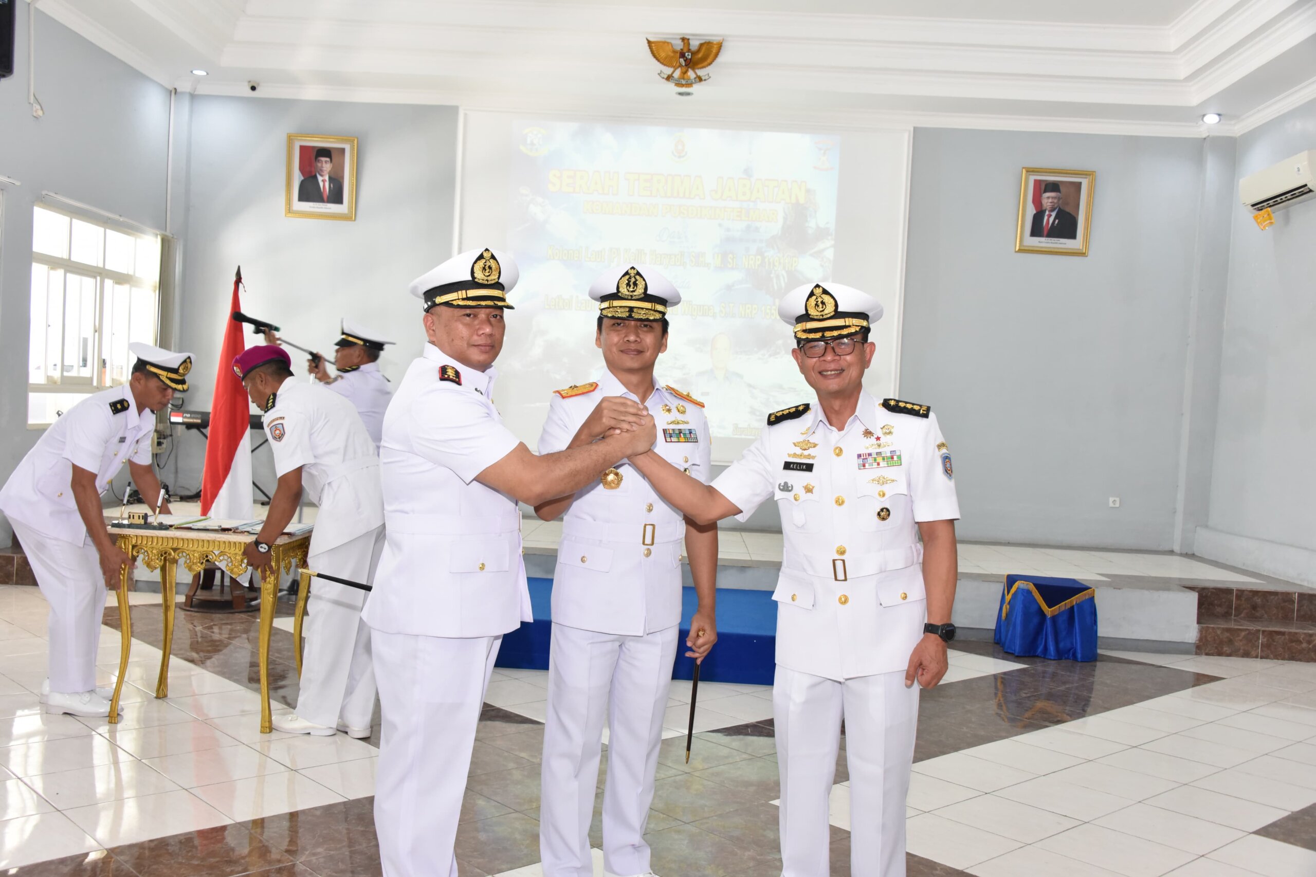 Meganews.co.id, Surabaya – Komandan Kodikopsla (Dankodikopsla) Kodiklatal Laksma TNI Muhammad Iwan Kusumah memimpin Upacara Serah Terima Jabatan (Sertijab) Komandan Pusdikintelmar, (Danpusdikintelmar) Kodiklatal dari Kolonel Laut (P) Kelik Hariyadi kepada Letkol Laut (S) Yudodi Ananta Wiguna yang merupakan Alumni AAL 47 Tahun 2001, bertempat di Auditorium Gedung Soebarja Pusdikintelmar Kodiklatal Surabaya. Kamis (29/08/24).