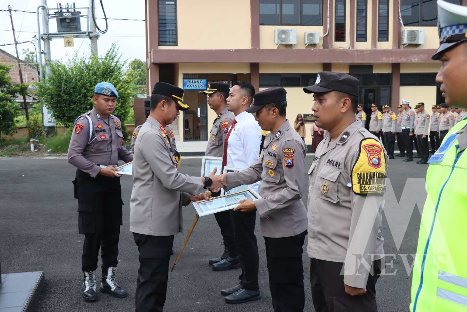 Meganews.co.id, Nganjuk – Kapolres Nganjuk, AKBP Muhammad, S.H., S.I.K., M.Si., diwakili Wakapolres Nganjuk Kompol Subiyantana, S.H., M.H., memberikan piagam penghargaan kepada 41 anggota Polri…